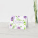 Carte de remerciement aquarelle avec des pensées violettes et vertes. J'ai inclus un modèle de texte qui peut être facilement modifié selon vos préférences d'informations, de police et de couleur. Remplacez le texte de remerciement par votre propre message pour en faire votre papeterie personnelle. J'ai laissé l'intérieur vierge intentionnellement pour laisser place à votre message. Coordonez-la avec mes autres articles de cette collection. Si vous avez besoin d'aide ou si vous aimez ce que vous voyez, mais que vous ne trouvez pas ce dont vous avez besoin, veuillez me contacter pour une commande personnalisée. Pour les problèmes liés à votre commande et à l'expédition, veuillez contacter le service client de Zazzle via https://goo.gl/nCgptf