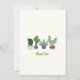 Carte de remerciement avec cactus mignon en pot. C'est un design mignon qui présente des plantes en pot avec des cactus et des succulentes sur fond blanc. Des plantes vert clair et vert foncé dans des pots violets, jaunes et roses. Le texte dit 'Merci'. Vous pouvez modifier le texte. C'est un produit personnalisé. N'hésitez pas à me poser des questions si vous en avez.