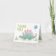 Carte de remerciement d'anniversaire sur le thème des dinosaures. Pour les enfants. Ballon. Personnalisable. Personnalisé. Stégosaure. Rose. Vert. À pois. Ballons. Peint à la main. Dessiné à la main.