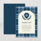 Pour la future maman qui attend un petit garçon. Carte de remerciement pour baby shower avec monogramme à carreaux bleu marine. Remerciez vos invités d'avoir assisté à votre baby shower et pour leurs gentils cadeaux avec un mot de remerciement. Personnalisez avec l'inclusion de votre initiale de monogramme, gardez le texte 'MERCI' au milieu du design tel quel ou modifiez-le et incluez votre propre message de remerciement en bas du design. Fait partie de la collection baby shower Monogramme à carreaux bleu marine. Une collection de baby shower classique, intemporelle et élégante.