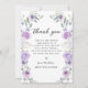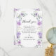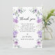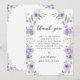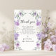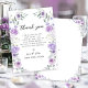 Partagez votre gratitude avec style grâce à ces cartes de remerciement chic et douces pour mariage avec motifs floraux, représentant une couronne bohème avec des fleurs violettes et lavande entrelacées de feuilles d'eucalyptus vertes. Parfaites pour une célébration de mariage élégante, ces cartes ajoutent une touche élégante et sophistiquée. Idéal pour les célébrations de mariage de printemps ou d'été.