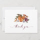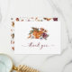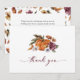 Carte de remerciement citrouille. Célébrez les festivités d'automne avec des citrouilles à l'aquarelle peintes à la main, des fleurs d'automne burgundy et terracotte, des botaniques vert forêt et rouille, et un script calligraphié manuscrit burgundy. Aidons à rendre votre mariage, votre douche nuptiale ou votre fête prénatale encore plus spéciale avec une belle carte de remerciement.