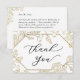 Cette carte de remerciement botanique moderne présente une image sophistiquée avec son design doré et son "Merci" élégant en écriture moderne. Le verso comporte un accent botanique doré ainsi que votre message de remerciement personnalisé. Un style professionnel et unique, adapté à un usage professionnel ou personnel.