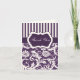 Cette carte de remerciement damassé de style vertical aubergine violet, ivoire et rose pâle avec des rayures correspond à l'invitation de mariage présentée ci-dessous.
