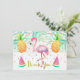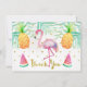 Cette jolie carte de remerciement d'anniversaire à l'aquarelle tropicale comporte un flamant rose, des fruits et du feuillage. Le design comprend également des points et du texte en faux or. Votre message apparaît au verso de la carte. Une invitation d'anniversaire, une étiquette de faveur et une affiche de bienvenue pour une fête d'anniversaire de design similaire sont également disponibles en magasin. Cette carte de remerciement d'anniversaire à l'aquarelle de flamant rose tropical est prête à être personnalisée et est un excellent moyen de remercier les invités de la fête d'anniversaire de votre petite fille.