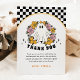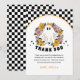 Ajoutez une touche de charme rétro à votre célébration d'Halloween avec cette carte de remerciement groovy, mettant en vedette un fantôme mignon avec des fleurs et une ambiance vintage ludique — parfaite pour une fête d'anniversaire effrayante pour filles.