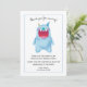 Joli design de monstre pour l'anniversaire de votre enfant sur le thème de la fête des monstres ! Illustration d'un monstre bleu avec la bouche grande ouverte portant un chapeau de fête. Le texte ci-dessus dit "merci d'être venu !" et le texte ci-dessous entre dans les détails en remerciant l'ami d'avoir assisté à l'événement et pour le cadeau qu'il a apporté. Vous pouvez ajouter le nom de votre enfant en bas. Les textes sont facilement modifiables en ligne.