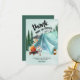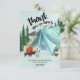 Carte de remerciement sur le thème du camping - parfaite pour un barbecue dans la cour, un pique-nique ou une fête d'anniversaire en plein air. Ce design à l'aquarelle bleue et verte présente un paysage de montagne et de forêt avec une tente, un feu de camp et des smores. Le titre indique "merci beaucoup" et le reste du message de remerciement est entièrement personnalisable.