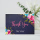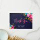 Carte de remerciement de douche de mariage florale rose aquarelle bohème avec tableau noir marine