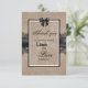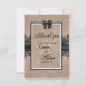 Carte de remerciement de mariage en toile de jute, lin et dentelle.