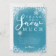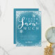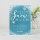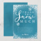 Modèle de carte de remerciement de fête d'anniversaire sur le thème de la neige hivernale mignonne en bleu turquoise avec de la neige blanche brillante et des flocons de neige avec un texte de typographie qui dit "merci beaucoup neige". Le message éditable remercie les invités d'être venus à la fête et pour le cadeau. Idéal pour le premier anniversaire d'un garçon pendant la saison de Noël.