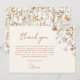 Exprimez votre gratitude avec notre carte de remerciement pour une baby shower Terracotta Wildflower. Cette carte magnifiquement conçue capture l'essence du charme de la nature, avec des fleurs sauvages vibrantes sur un fond chaud terracotta.