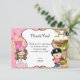 Carte de remerciement de fête de princesse aux cheveux bruns & pirate. Ceci peut être utilisé comme une carte de remerciement ou pour d'autres textes en tant qu'insert à joindre à l'invitation plus grande correspondante. Choisissez de la personnaliser pour commencer à ajouter vos propres détails personnalisés au design.