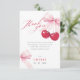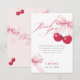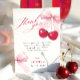 Exprimez votre gratitude avec cette élégante carte de remerciement Cerise sur le Gâteau. Avec son joli nœud rose et ses cerises à l'aquarelle, c'est le moyen idéal pour envoyer des remerciements doux et élégants après votre fête de fiançailles.