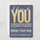 Magnifique typographie moderne de couleur bleu marine avec un look et une sensation vintage doux et magnifiques. Ajoutez votre propre texte au modèle pour créer cette carte de fin d'études 2014 brillante, populaire, de qualité et professionnelle. Fond de papier de couleur bleu ciel magnifique avec une typographie dorée brillante époustouflante. Cartes d'invitation de fête tendance de la promotion 2014 !