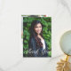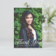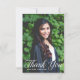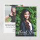Cette carte de remerciement de fin d'études avec photo et typographie blanche élégante présente une écriture blanche chic sur votre photographie de fin d'études secondaires ou universitaires pour la promotion 2023. Personnalisez avec votre nom et votre classe sous la belle calligraphie et ajoutez votre propre texte et une 2ème photo au verso.