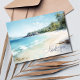 Partagez votre gratitude avec charme côtier en utilisant cette carte de remerciement de mariage à l'aquarelle de plage. Le devant présente un design serein de plage à l'aquarelle, évoquant la tranquillité et la romance de votre célébration au bord de la mer. Le verso offre un espace pour votre message de remerciement personnalisé, ce qui en fait le moyen idéal pour exprimer votre appréciation tout en reflétant la beauté de votre journée spéciale.