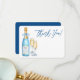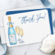 Envoyez des remerciements sincères avec style avec cette élégante carte de remerciement de mariage. Partie de la collection “Quelque chose de bleu avant de se dire oui”, elle présente une bouteille de champagne bleu aquarelle, des flûtes pétillantes et un accent de bague en diamant délicat. Personnalisez avec le nom de la mariée et les détails de l'événement pour coordonner parfaitement avec votre célébration sur le thème bleu ou la douche de champagne.