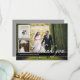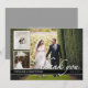 Un design élégant en noir et blanc qui présente une photo pleine grandeur des mariés avec deux photos plus petites insérées sur le devant et un espace pour votre message personnalisé de remerciement au verso. Le style noir, blanc et gris élégant est intemporel et classique.