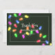 Carte de remerciement de mariage de Noël avec des lumières de Noël brillantes et vives.