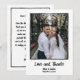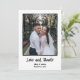Une carte de remerciement de mariage manuscrite avec note