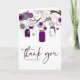 Illustrations fantaisistes de pots mason violets suspendus à un arbre avec des ficelles en forme de cœur, deux tourtereaux et une variété de fleurs. Cette carte de remerciement de mariage est assortie à d'autres articles. Cette invitation dans un pot Mason serait parfaite pour des mariages printaniers, hivernaux et en plein air. Cela fait partie d'une suite d'invitations de mariage.