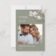 Fleurs d'art fin rose clair sur une photo personnalisée avec un texte de remerciement aligné à gauche sur un fond vert sauge.