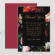 Carte de remerciement de mariage floral rouge foncé et noir. Le fond rouge peut être remplacé par votre propre photo ou couleur de votre choix. Tout le texte est entièrement personnalisable. Notre collection de suites de mariage ALEXANDRIA est remplie de fleurs sur des fonds noirs et rouges en utilisant un texte de couleur cuivre. Humeur, élégant et moderne.
