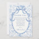 Carte de remerciement de mariage florale chinoiserie au ruban bleu