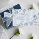 Remerciez vos invités d'avoir assisté à votre douche de mariée "quelque chose de bleu" avec notre carte de remerciement de luxe avec des rayures de chambray classiques et une illustration de fleurs de ligne marine.