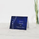 Cette carte de remerciement de mariage présente un motif tourbillon de feuille d'argent sur fond bleu foncé. Votre texte personnalisé est en argent à droite. Cette carte correspond aux invitations de mariage tourbillon feuille d'argent bleues dans notre boutique.