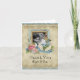 Carte de remerciement de photo de mariage avec cadre, roses, fleurs, ailes de colombes, papillons, victorien.