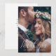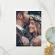Jolie et élégante carte de remerciement de photo de mariage avec écriture calligraphique blanche avec une photo et un message de remerciement personnalisé au verso de la carte.