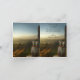 Une carte de remerciement de mariage romantique présentant deux verres à vin et des raisins sur un tonneau de vin surplombant un paysage époustouflant.