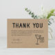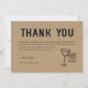 Carte de remerciement drôle de cocktails gratuits - Illustration dessinée à la main d'un martini et d'un toast de boisson mixte sur un fond kraft rustique merveilleux. Un remerciement amusant pour un événement amusant.