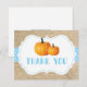 Carte de remerciement en burlap bleu avec citrouille d'automne. Pour une personnalisation supplémentaire, veuillez cliquer sur le bouton "Personnaliser" et utiliser notre outil de conception pour modifier ce modèle.