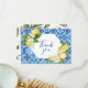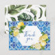 Carte de remerciement élégante et moderne à motif floral de citron aquarelle sur carreau bleu.