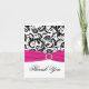 Remerciements Carte de remerciement en damas noir, blanc et fuch