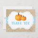 Carte de remerciement en toile de jute bleue avec citrouille d'automne. Pour une personnalisation plus poussée, veuillez cliquer sur le bouton "Personnaliser" et utiliser notre outil de conception pour modifier ce modèle.