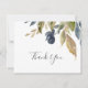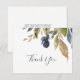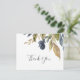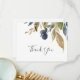 Cette carte de remerciement de verdure d'automne est parfaite pour un mariage d'automne. Le design rustique moderne présente des feuilles de couleur bleu marine, vert sauge et or avec des brins de fleurs bleu foncé. Personnalisez le dos de la carte avec vos noms et un message de remerciement. Vous pouvez également laisser la section du modèle de message de remerciement vierge pour écrire une note personnalisée à la main sur chaque carte après leur arrivée. Ces cartes peuvent être utilisées pour un mariage, une douche de mariée ou tout événement spécial.