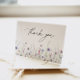 Une carte de remerciement à thème floral sauvage, parfaite pour tous ceux qui aiment la beauté de la nature. Les tons violets doux et les délicates fleurs des champs créent une atmosphère romantique et fantaisiste qui ne manquera pas d'impressionner vos invités.