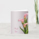 De jolies callas roses sur un fond rose perle modèle de carte de remerciement avec lys élégant.