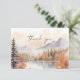 Une carte de remerciement forestier qui présente un paysage forestier à l'aquarelle dans des tons automnaux assourdis et une police moderne. Cette carte plate porte les mots "merci" sur le devant, puis un message de remerciement éditable au verso. Cette carte est le moyen idéal pour remercier vos invités pour vos cadeaux de douche, de mariage ou de fête. Associez-la à tout ce qui se trouve dans la collection RILEY pour un look cohérent.