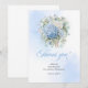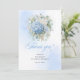 Carte de remerciement de mariage boho avec fleurs d'hydrangea bleue aquarelle et verdure d'eucalyptus, imprimée professionnellement par Zazzle sur du papier cartonné premium avec des détails nets, des couleurs riches et une finition lisse élégante.
