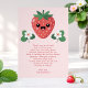 Envoyez le message de remerciement le plus doux avec cette carte de remerciement Kawaii Strawberry Baby Shower. Avec une fraise souriante adorable et un poème sur le thème de bébé, cette carte ajoute du charme et de l'humour à votre gratitude. Parfaitement coordonnée avec l'invitation correspondante, elle comprend un motif de dos de fraise florale pour plus de cutesse. Entièrement personnalisable et idéale pour les baby showers, les cadeaux de naissance ou les cadeaux de sprinkles.