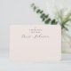 Une carte de remerciement chic et minimaliste de la future mariée. Ce design de carte plate présente des tons rose pâle doux, une typographie épurée et un script élégant mettant en valeur « La future Mme » — un moyen parfait d'exprimer sa gratitude après une douche de mariée, une fête de fiançailles ou un week-end de dernière soirée entre filles. Personnalisez avec le nom de la mariée et associez-la à des invitations, des pancartes et plus encore de la collection Minimal Modern Bridal Shower.