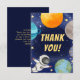 Pour le petit qui vient de fêter son anniversaire sur le thème de l'espace. Cette carte de remerciement moderne pour une fête d'anniversaire d'enfant sur le thème de l'espace peut être personnalisée avec l'inclusion de votre propre message au dos. Sur le devant, le texte du design peut être conservé tel quel ou modifié. Remerciez vos invités d'être venus avec ces jolies cartes de remerciement sur le thème de l'espace.