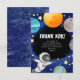 Pour le petit qui vient de célébrer un anniversaire sur le thème de l'espace. Cette carte de remerciement moderne pour enfants peut être personnalisée avec l'inclusion de votre propre message sur le devant. Aussi sur le devant, le texte de conception 'MERCI' peut être conservé tel quel ou modifié. Remerciez vos invités d'être venus à la fête de votre petit avec ces cartes de remerciement mignonnes sur le thème de l'espace.