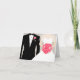 Élégante carte graphique du marié en costume avec noeud papillon et de la mariée avec voile tenant un bouquet de roses rouges stylisées. Modifiez cette jolie carte avec votre propre message à l'intérieur, actuellement elle indique merci. Design unique et illustration graphique par Sarah Trett.