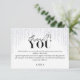 Voici la carte de remerciement pailletée pour l'enterrement de vie de jeune fille "Drunk in Love", le moyen idéal pour montrer votre appréciation à vos proches après votre fête de mariage ! Cette carte présente un design chic et sophistiqué, avec un fond pailleté argenté et une écriture noire élégante.